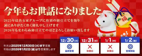 年末年始は混雑が予想される為ご予約はお早めにお願い致します。
